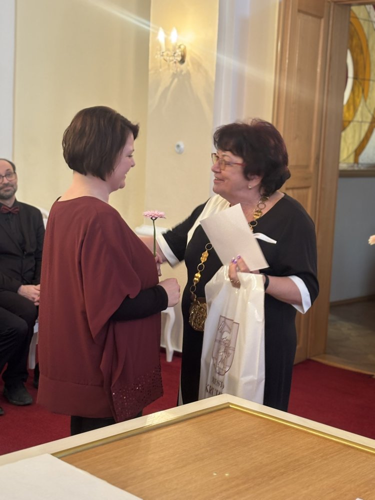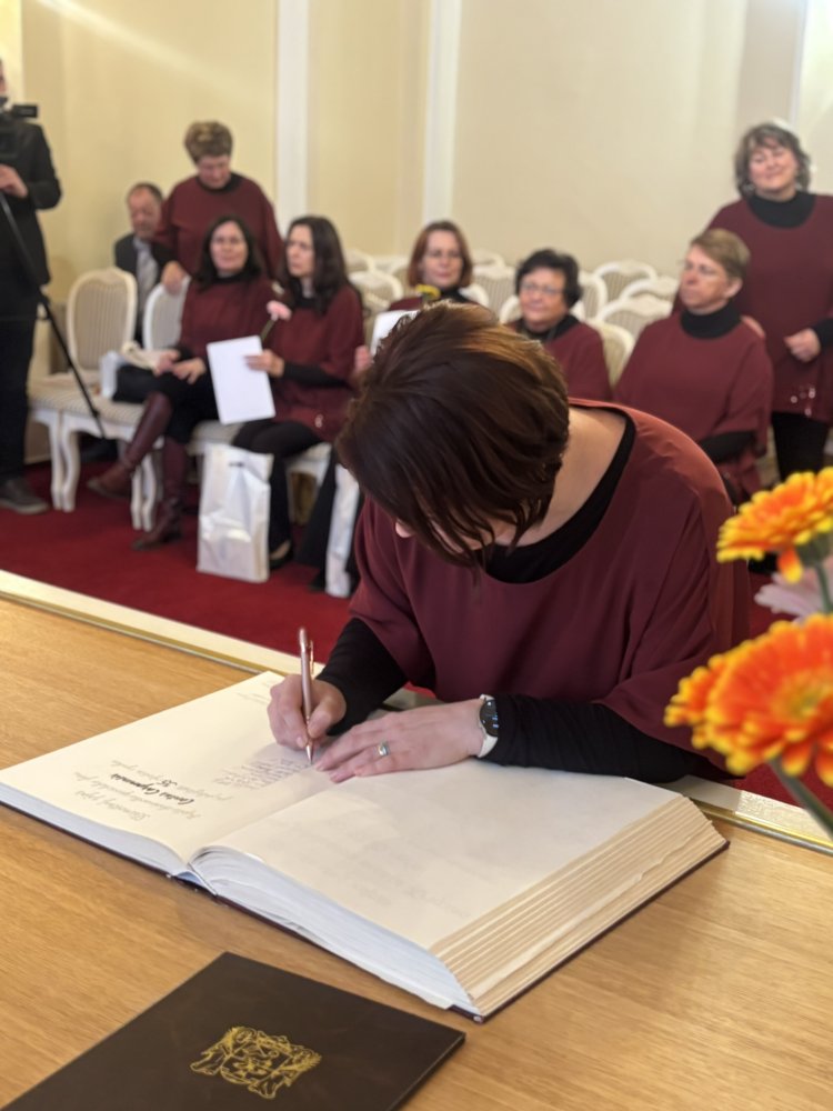 Pri príležitosti tohto významného jubilea sa zboru dostalo aj slávnostného prijatia v obradných priestoroch Mestského úradu v Krupine a zápisu do pamätnej knihy. Toto prijatie sa uskutočnilo na návrh viceprimátorky mesta Mgr. Anny Borbuliakovej, ktorá ho zároveň aj osobne viedla.