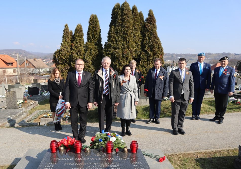 Po krátkom stretnutí veľvyslanca s členmi ZO SZPB Karasieva Stepanova v Krupine, ktorý sa ako nový zástupca na Slovensku tiež zapísal do Pamätnej knihy mesta Krupina. Počas stretnutia bol ocenený dlhoročný bádateľ dejín II. svetovej vojny z Nitry Slavomír Fijalka, ktorý sa ako čestná stráž zúčastnil pietneho aktu. Potom primátor i hostia položili vence a zapálili kahance aj pri pamätníku a vojnovom hrobe venovanom 26 príslušníkom Červenej armády a pri pamätníku 57 obetí z radov Kráľovskej rumunskej armády v priestore starého cintorína v Krupine. Stadiaľ sa primátor a nový veľvyslanec s hosťami išli pokloniť pamiatke obetí z radov Partizánskeho zväzku Alexandra Nevského na Šváb, ktorí zahynuli pri októbrovej ofenzíve nepriateľských vojsk v okolí Krupiny.